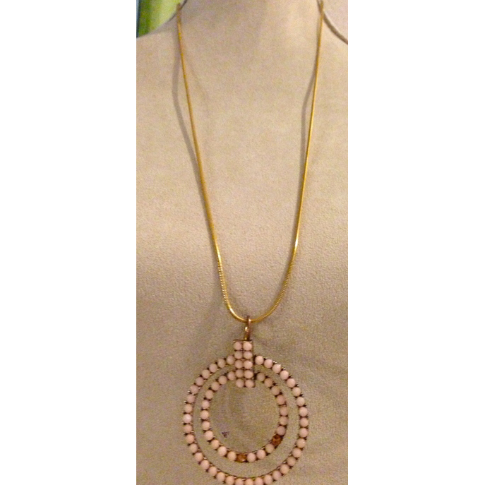 This necklace has a big impact when the pendant floats on the chain. It was an ear ring with a couple of stones missing so I placed a little smoked sparkle in their place. I love the uniqueness of this piece.