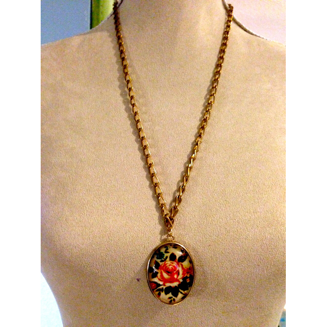 This vintage flower pendant dangles of of a unique chain. It is a one of a kind piece for the one of a kind person.