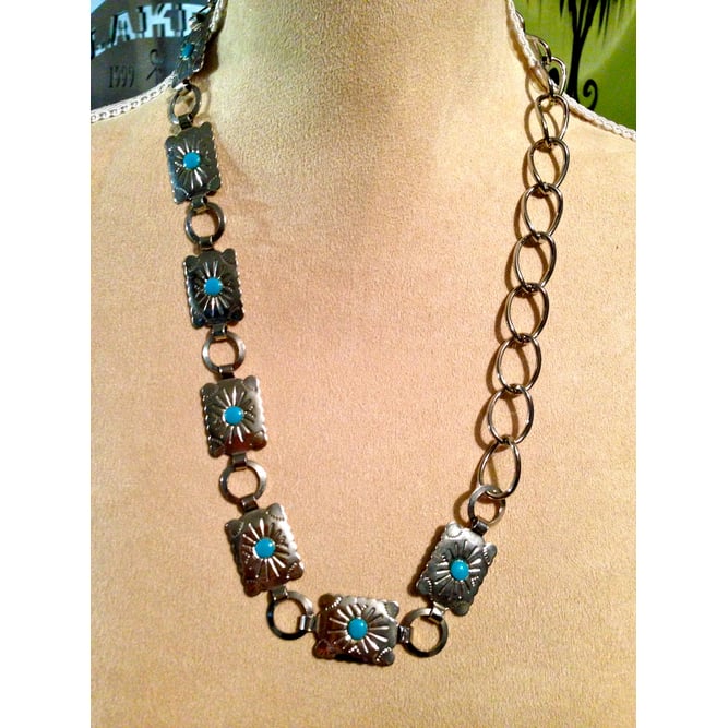 This necklace was recreated from an old belt. For those that enjoy turquoise will appreciate this piece.