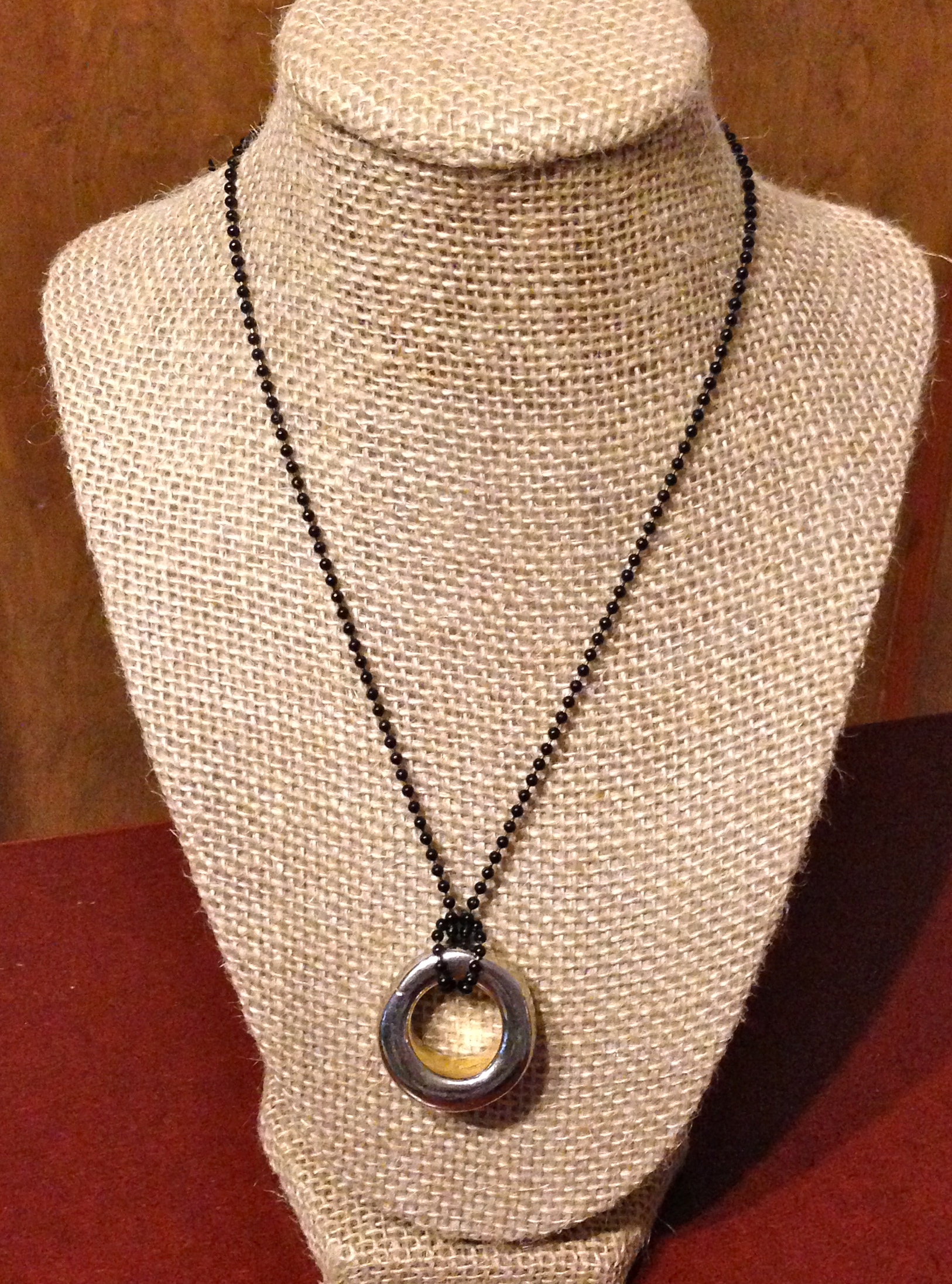 Black Ball Chain with Silver Ring Pendant